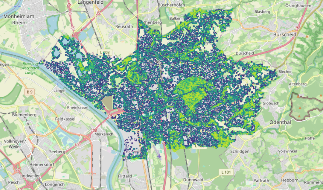 - Hitzebelastung: Daten zu Oberflächentemperaturen und Grünflächen helfen, Hitzeinseln zu identifizieren und Begrünungsmaßnahmen zu planen.
