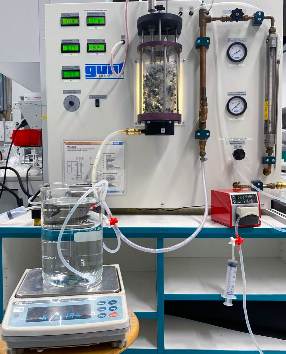 Der innovative Ansatz von AquaSan besteht darin, Trägermaterialien, sogenannte textile Abstandgewirke, mit Aktivkohle-Mikro- und Nanopartikeln zu beschichten und ein modulares textiles Reaktorsystem zu entwickeln. Textile Abstandsgewirke kombinieren eine große Adsorptionsfläche mit einem geringen Strömungswiderstand und bewirken eine deutlich dynamischere und gleichmäßigere Adsorption von PFAS und BPA aus dem Wasser. „Wir gehen von einer guten Regenerierbarkeit sowie Wiederverwendbarkeit der beschichteten Materialien aus. Die offene Struktur der Trägermaterialien sollte zudem das Biofouling-Risiko (Anreicherung von pflanzlichen und tierischen Mikroorganismen) reduzieren und die mechanische Beanspruchung der adsorptiven Schicht geringhalten, ergänzt Prof. Dr. Stéphan Barbe.