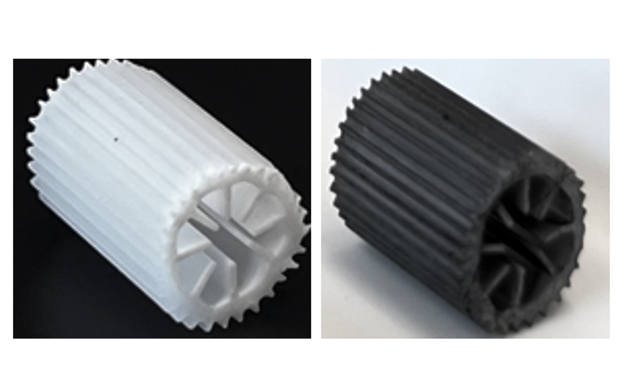 Die TH Köln fungiert im Projekt „AquaSan“ als Schlüsselpartner für Materialentwicklung, Konstruktion und Analytik. Prof. Dr. Stéphan Barbe hat mit seiner Arbeitsgruppe bereits eine erste Generation von BPA-Adsorbern entwickelt. Die mit feindispersen Aktivkohlepartikeln beschichteten High-Impact-Polystyrol-Füllkörper (HIPS, siehe Abbildung) zeigen eine sehr gute Adsorption von BPA in einem Bereich von 0,5 bis 20 µg/L (BPA-Grenzwert = 2,5 µg/L ). „Diese Adsorber der ersten Generation zeigen gute Ergebnisse, jedoch ist ihre Skalierbarkeit sehr begrenzt. Die Übertragung unserer kostengünstigen Technologie auf Textilien bietet eine attraktive Möglichkeit, den Prozess in sehr großem Maßstab einzusetzen“, erklärt Prof. Dr. Stéphan Barbe.