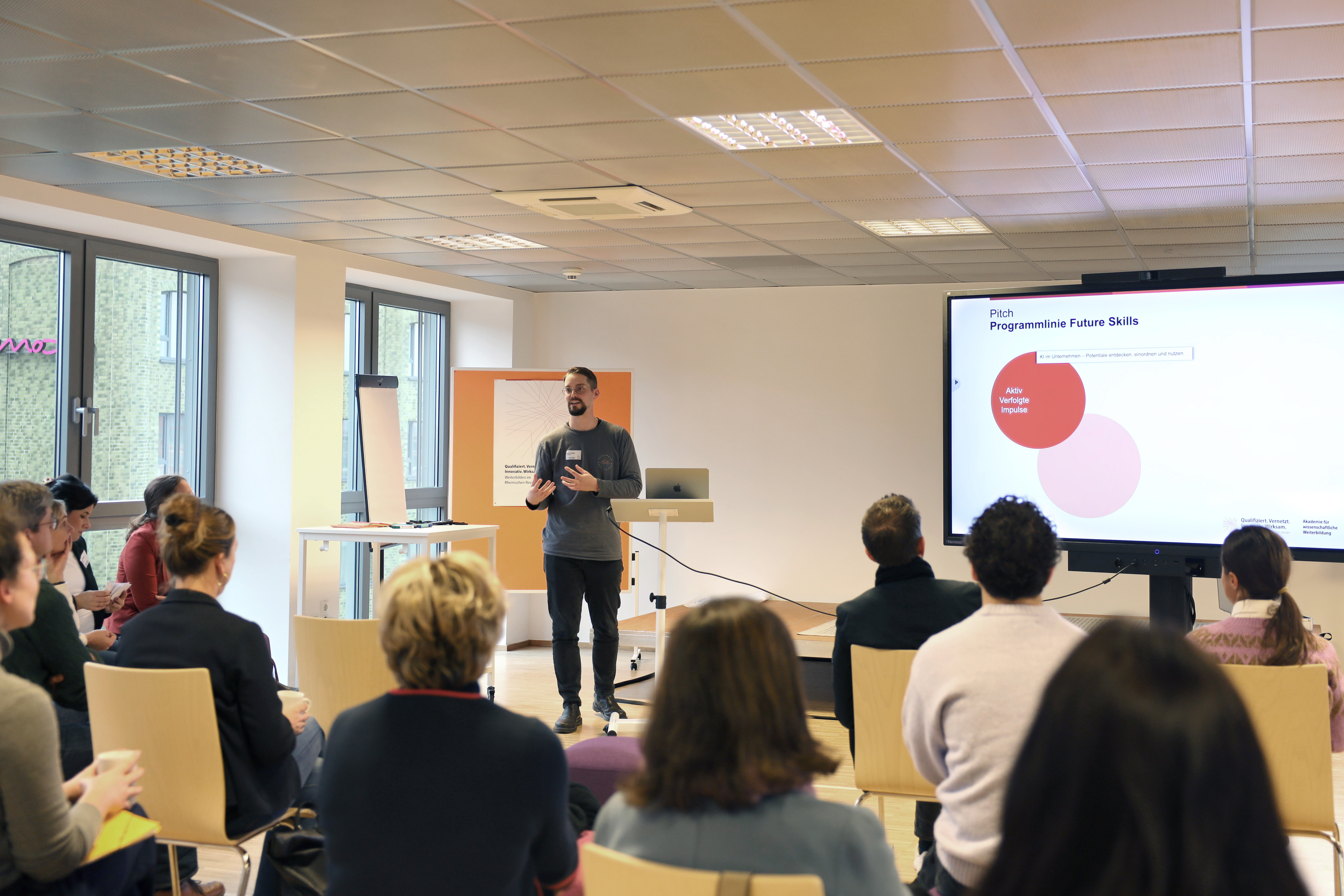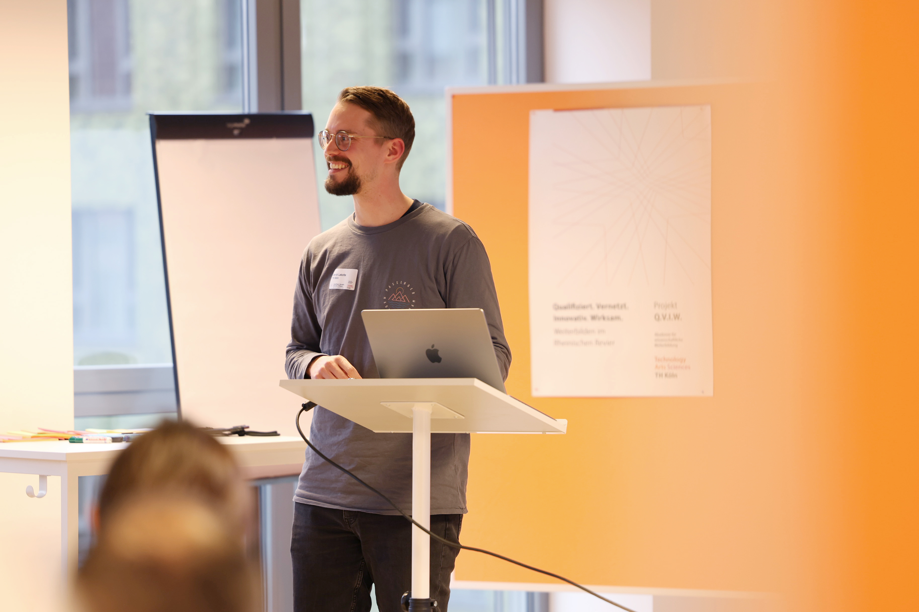 Weiterbildungsentwickler David Lakotta präsentierte vertretend den Arbeitsstand der Programmlinie Future Skills. (Bild: TH Köln)