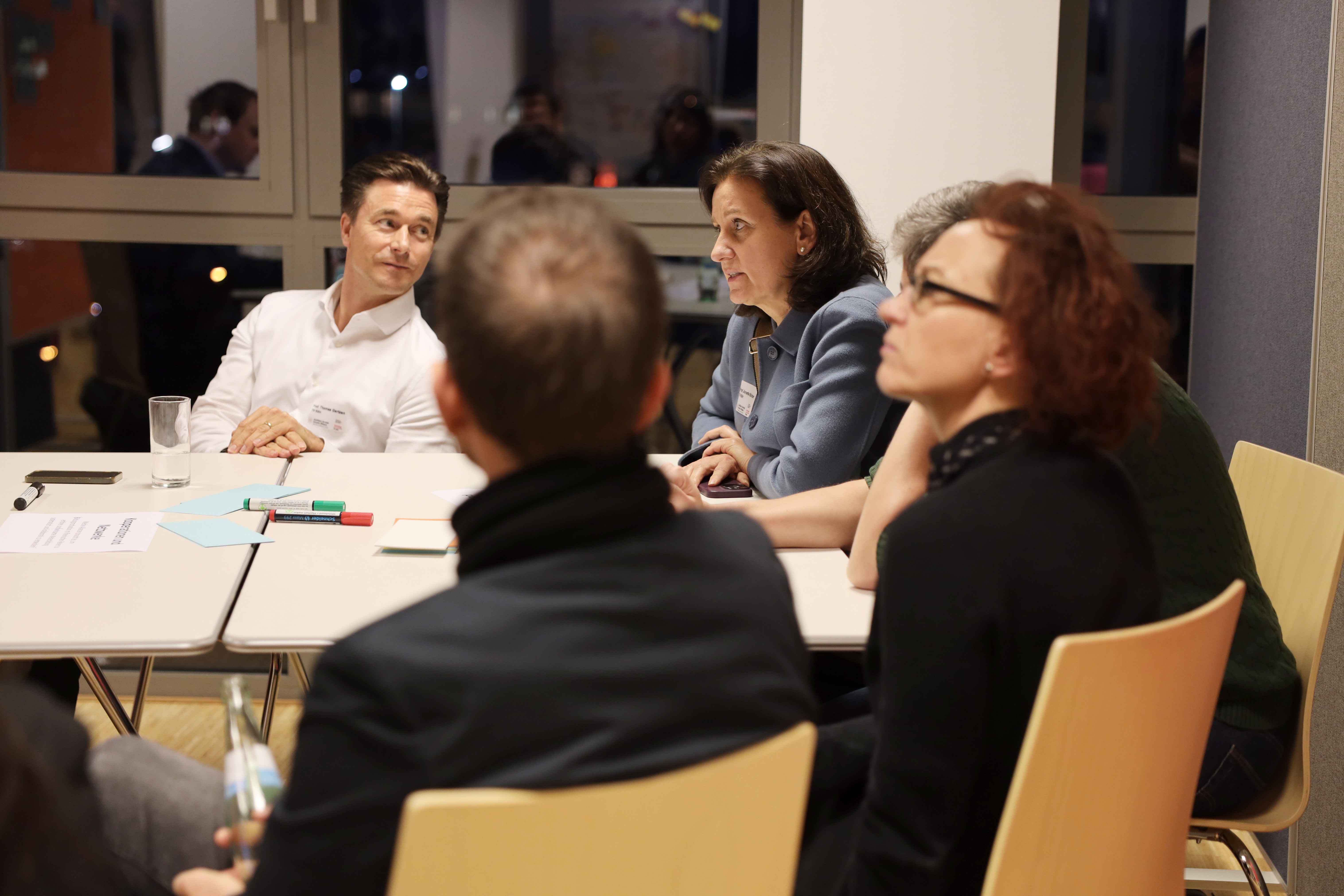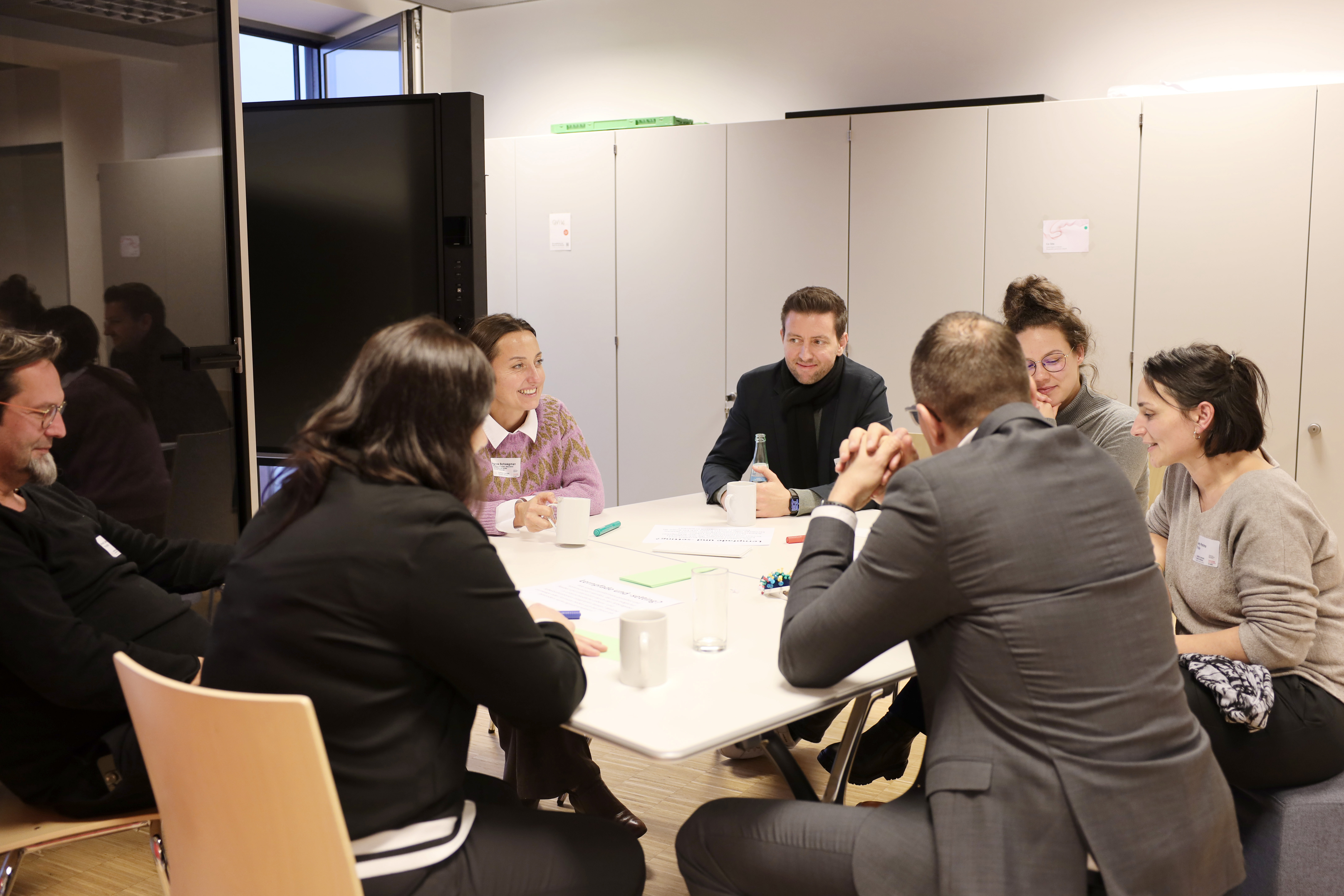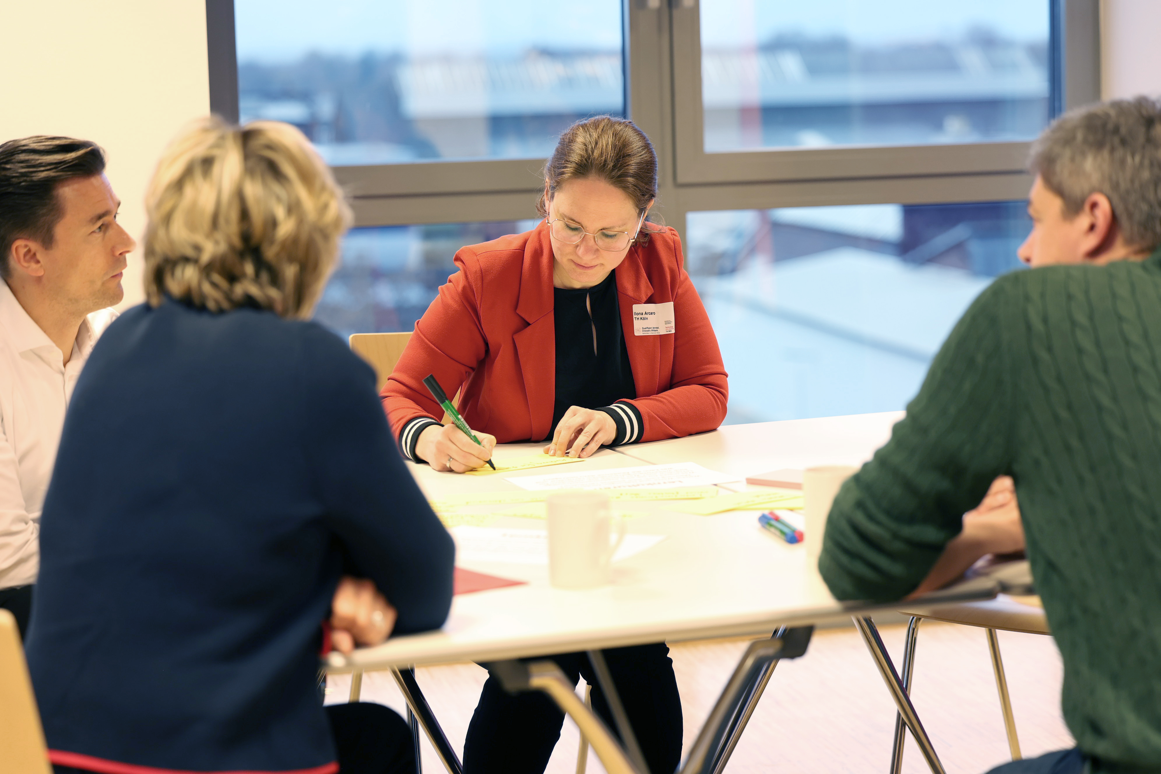 Am dritten Tisch befassten sich die wechselnden Gruppen mit Kooperationen und Netzwerken. (Bild: TH Köln)