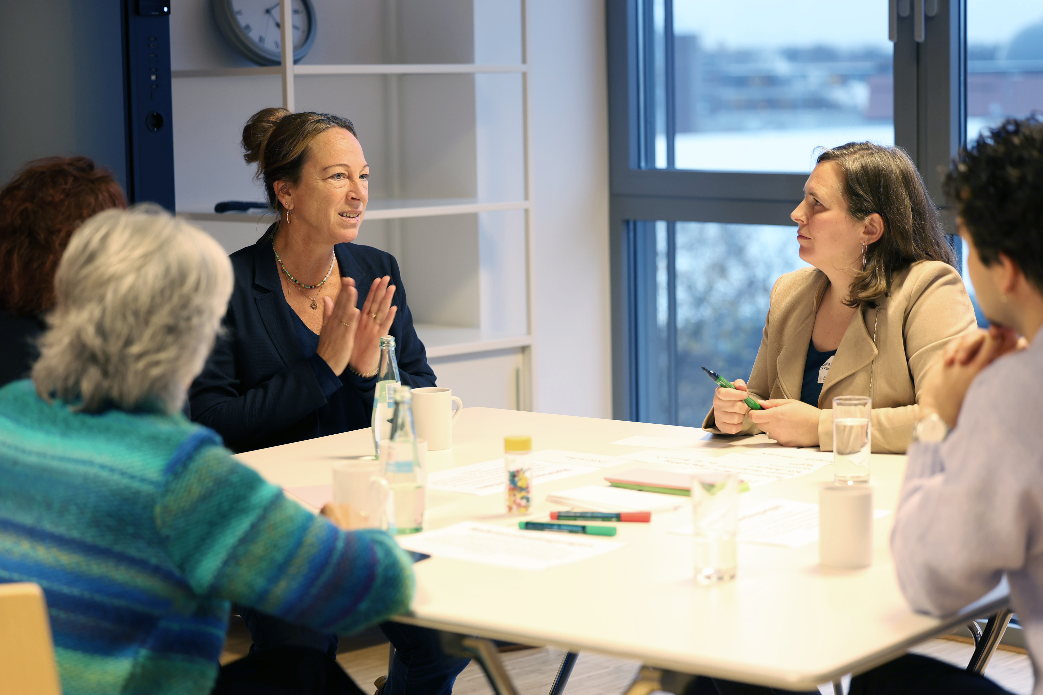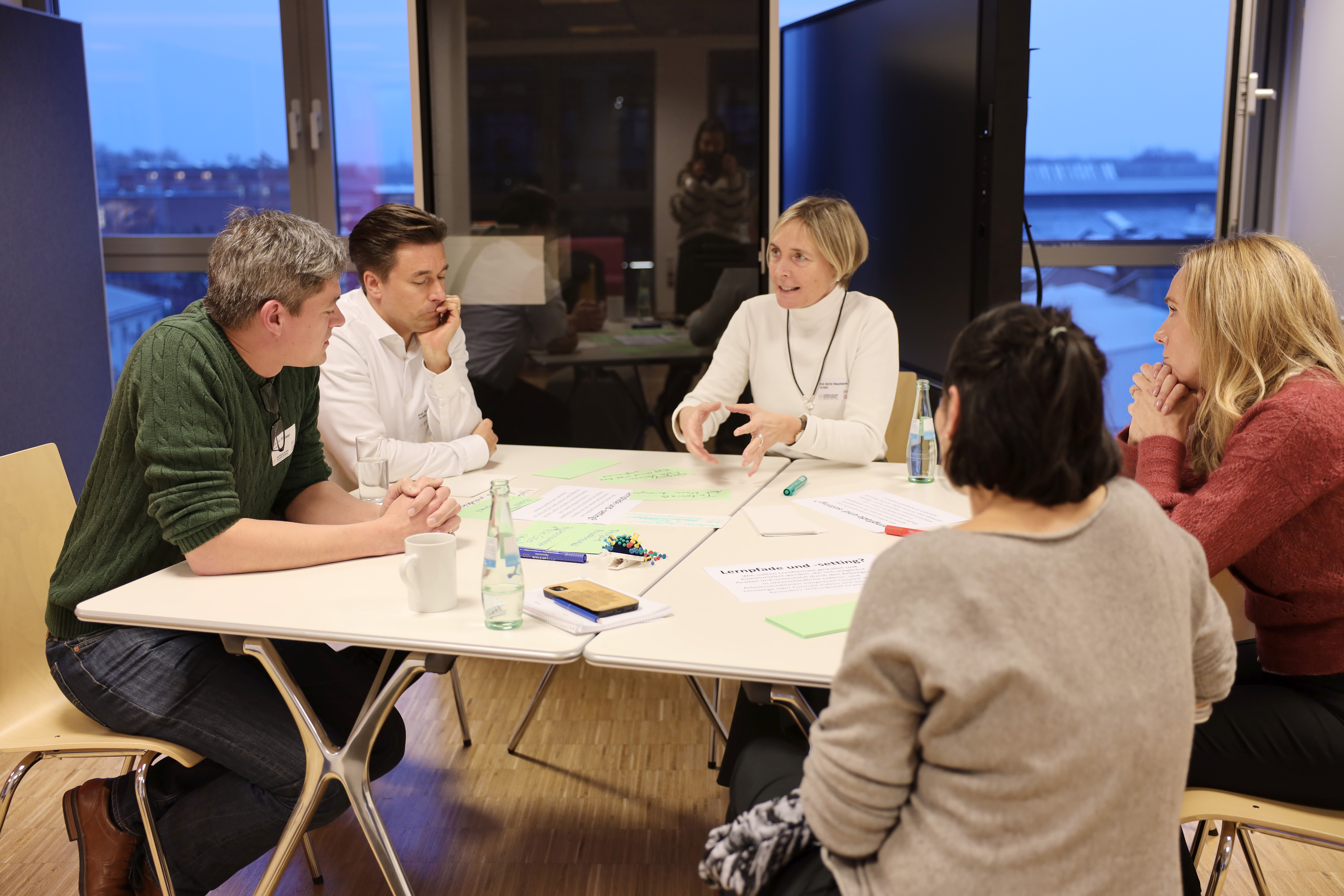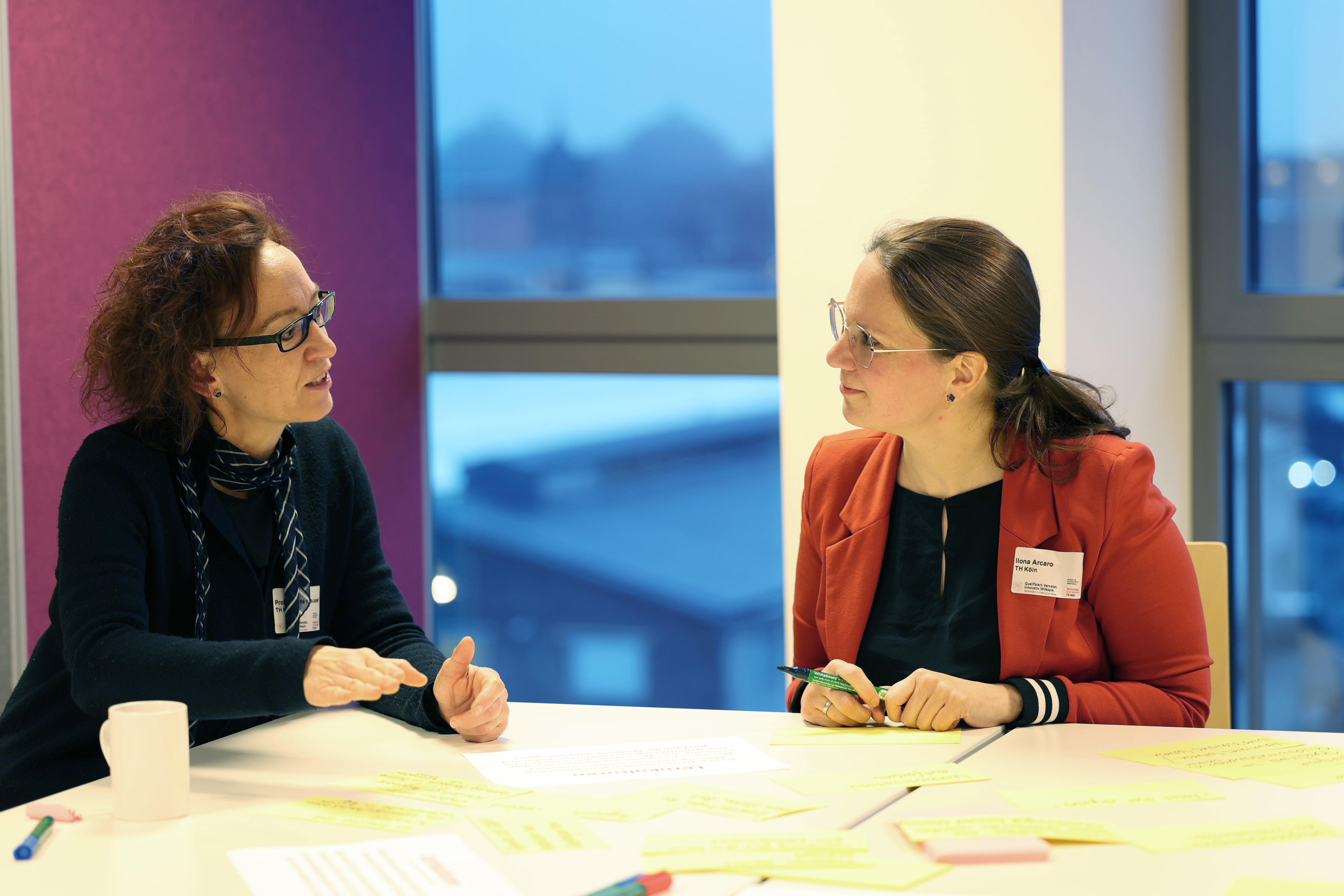 Am dritten Tisch befassten sich die wechselnden Gruppen mit Kooperationen und Netzwerken. (Bild: TH Köln)