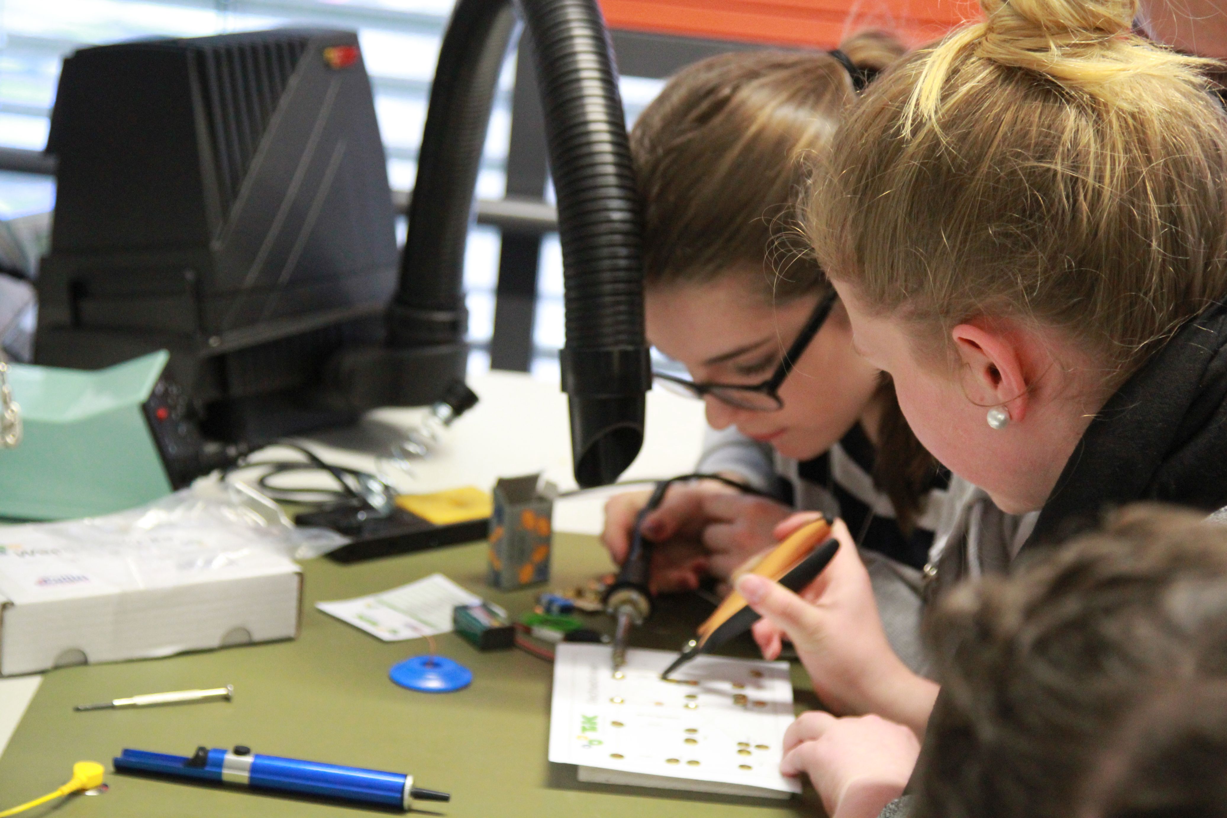 Wie erfolgreich Frauen gerade auch in technischen Disziplinen sein können, zeigten elf TH-Mitarbeiterinnen durch ihr persönliches Beispiel. Sie betreuten die Mädchen in den Workshops der Bereiche Elektronik, technische Informatik, Medieninformatik und Werkstoffkunde.