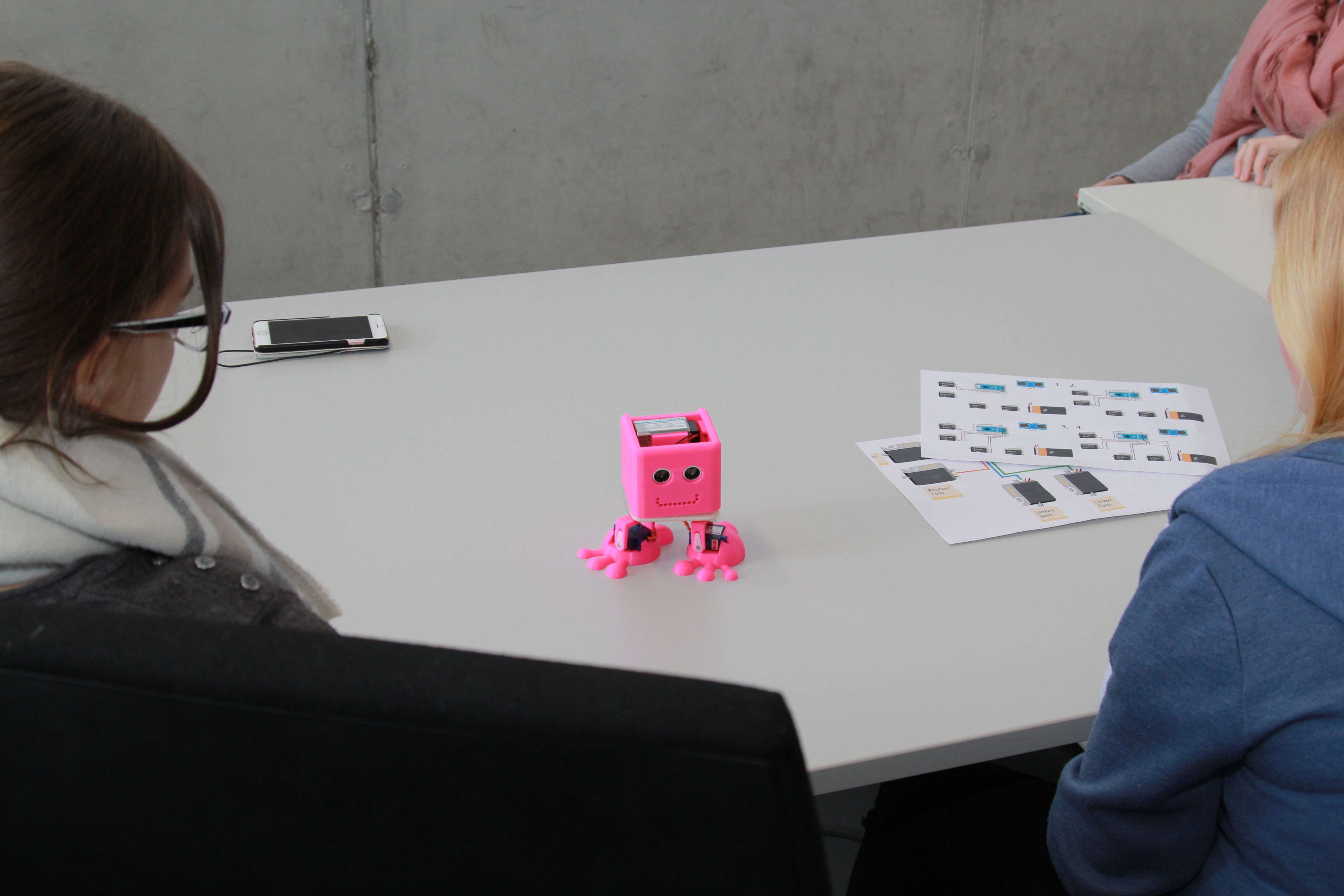 46 Mädchen aus sechs Schulen waren an den Hochschulcampus gekommen, um „Technik zum Anfassen zu erleben“. In sechs verschiedenen Workshops lernten sie nicht nur Kunststoffschäume und Mikroskope kennen, sie löteten auch LED-Lichter, programmierten Laufroboter, entwickelten Computer-Spiele und entwarfen ein Konzept für einen wirklich kundenfreundlichen Fahrkartenautomaten. „Ich hätte nicht gedacht, dass Medieninformatik so vielseitig ist.“, lautete das Fazit eines Mädchens, nachdem ihre Gruppe den Entwurf für einen Fahrkartenautomaten vorgestellt hatte. Wie bei einem richtigen Projekt wurde zuerst die Nutzergruppe identifiziert, um darauf das Konzept für eine effiziente Mensch-Computer-Interaktion aufzubauen.