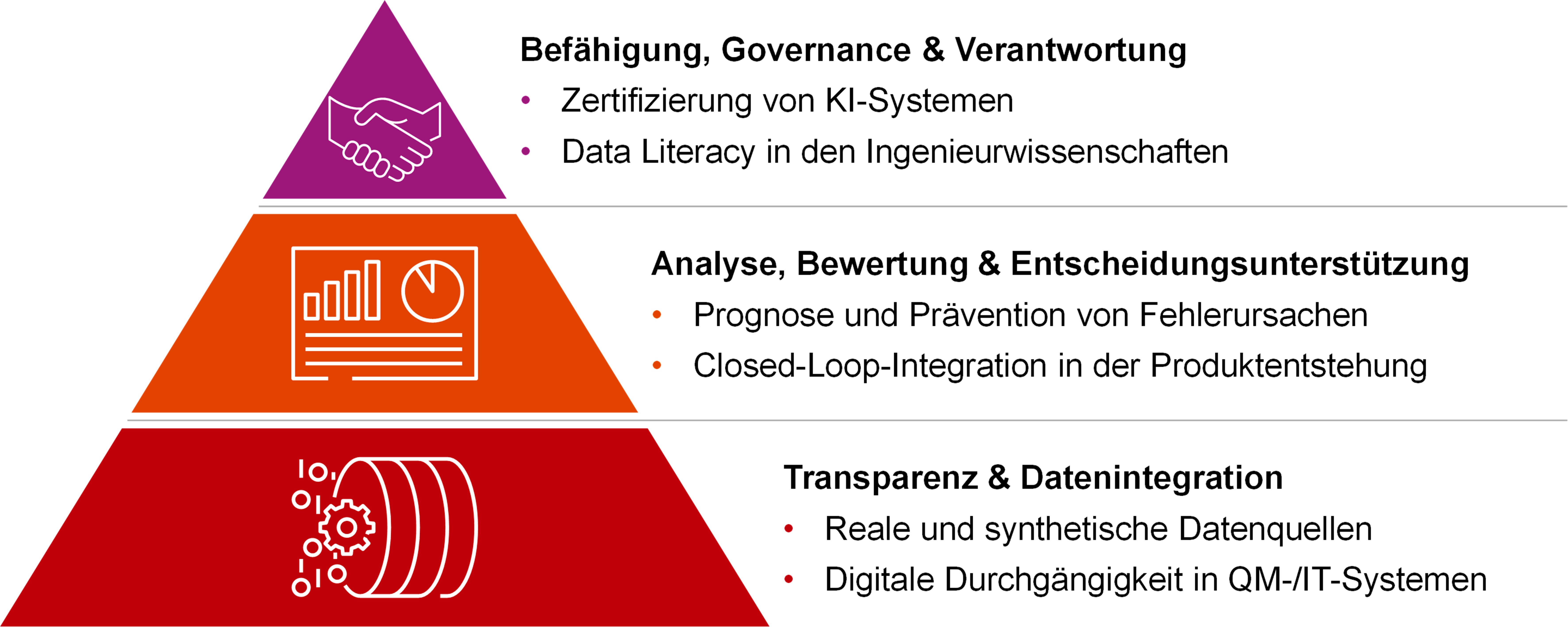 Stärkung von Data Literacy in den Ingenieurwissenschaften, Bewertung und Zertifizierung KI-gestützter Systeme sowie verantwortungsvolle Gestaltung datenbasierter Qualitätsprozesse.