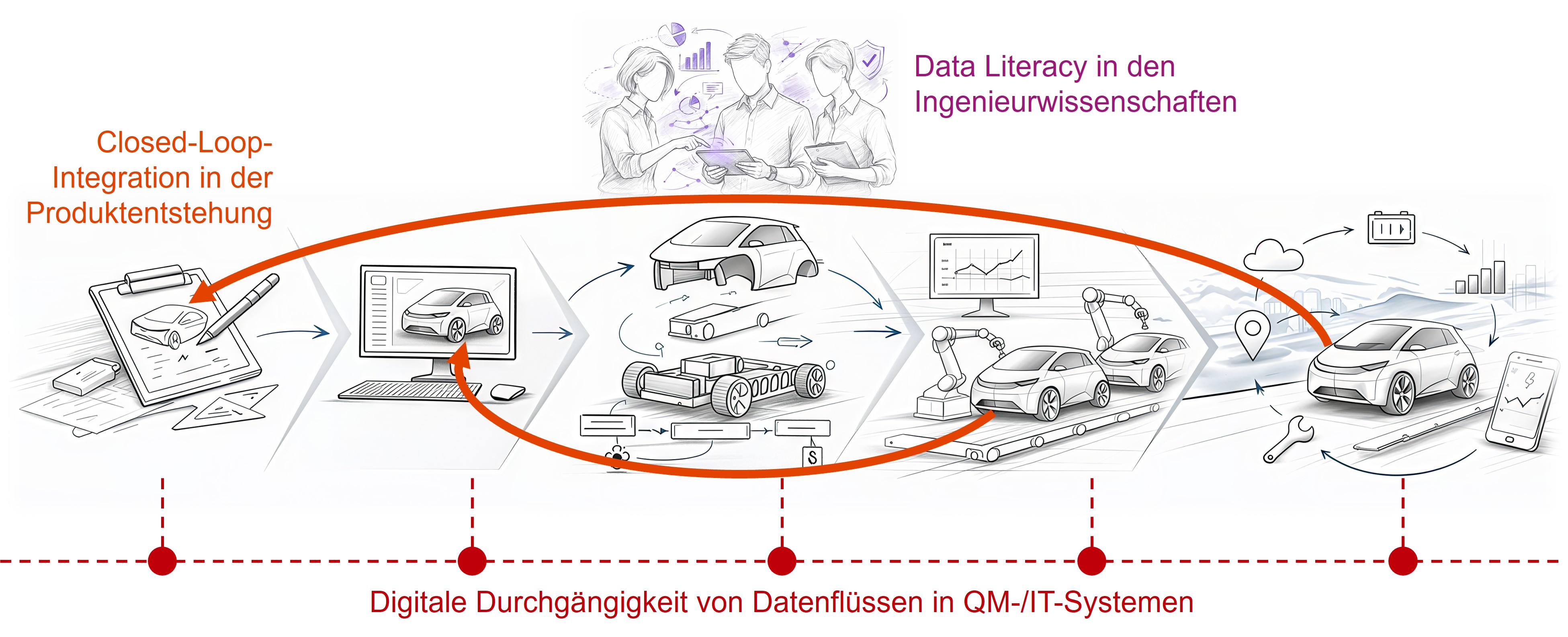Im Mittelpunkt steht die Vision eines durchgängig transparenten Produktentstehungsprozesses, in dem reale und synthetische Daten valide, qualitätsrelevante Informationen liefern und wissensintensive Entscheidungen faktenbasiert ermöglichen. Qualität wird dabei nicht isoliert betrachtet, sondern als integrativer Bestandteil technischer, organisatorischer und digitaler Systeme verstanden.