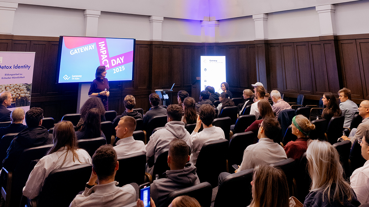 Beim Gateway Impact Day 2025 an der TH Köln standen nachhaltige und soziale Gründungsideen im Mittelpunkt. Über 90 Gäste erlebten spannende Pitches von vier ausgewählten Teams der Gateway Hochschulen, einen Impulsvortrag von Detox Identity und zahlreiche Gespräche beim anschließenden Netzwerken mit Gründer*innen und Initiativen.