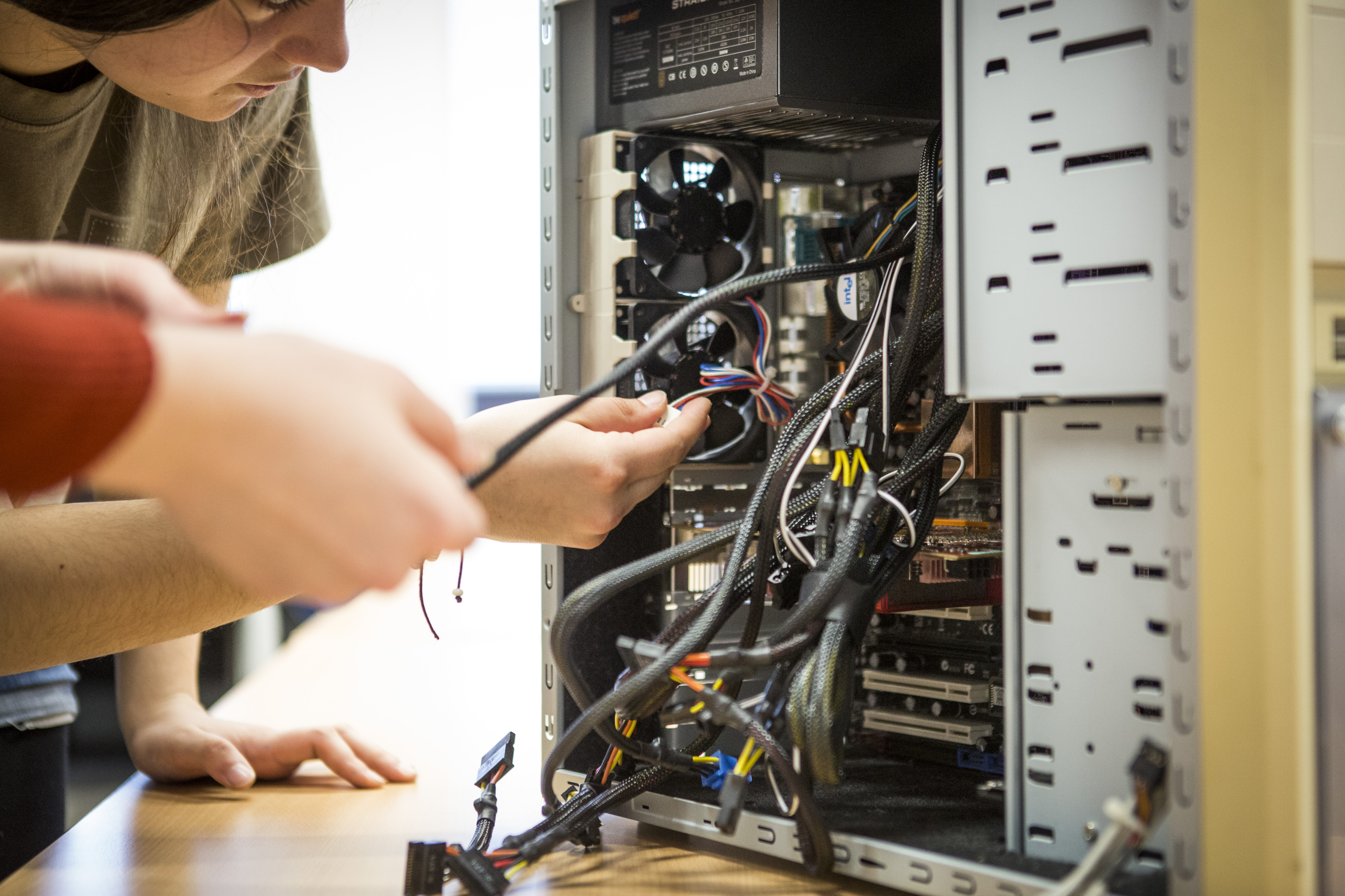 Eine betriebliche Ausbildung zur Fachinformatikerin – wäre das etwas für mich? Am Girls' Day bauen die Schülerinnen einen PC zusammen. (Bild: Heike Fischer/TH Köln)