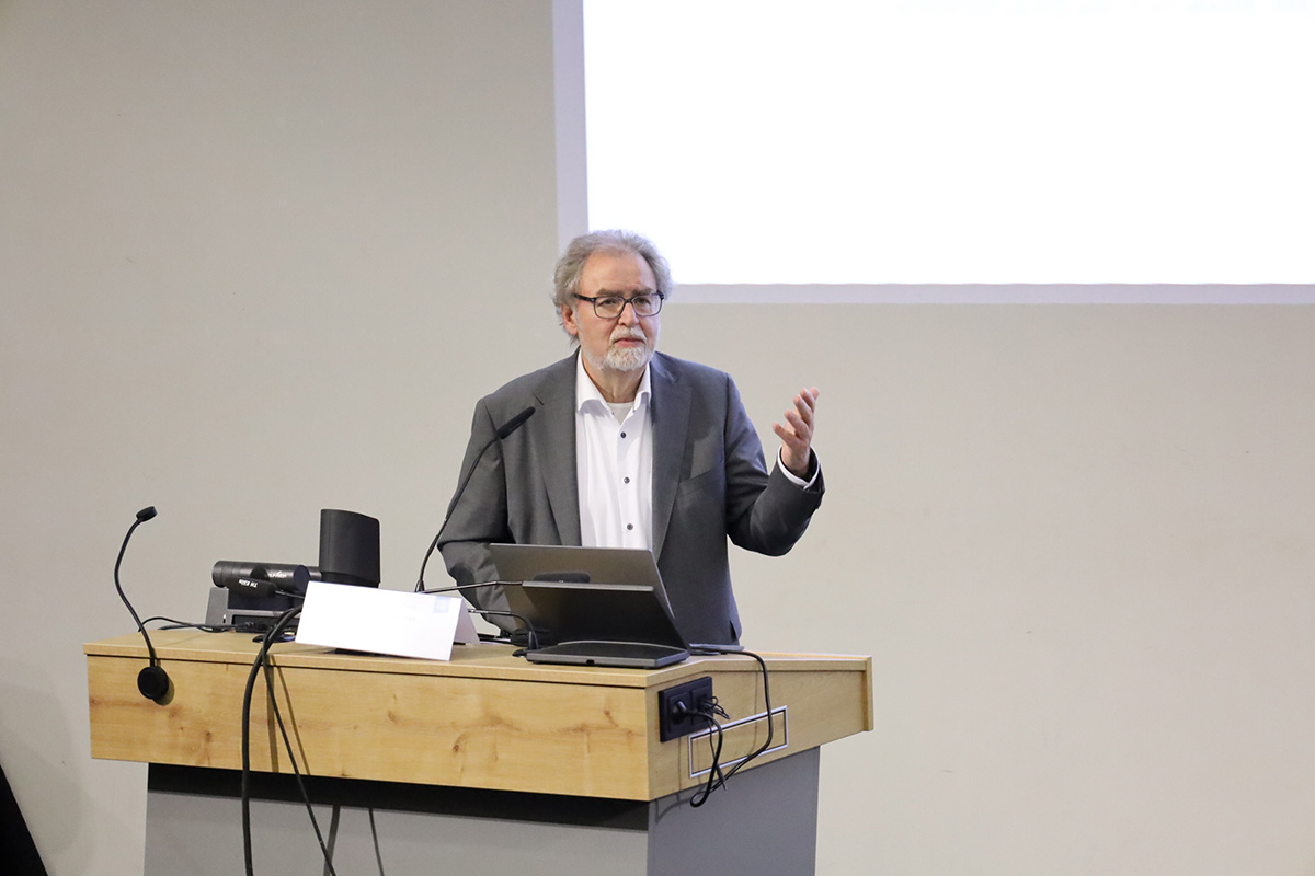 Prof. Dr. Gerd Sadowski, Vizepräsident der TH Köln, stellte die Vorteile des neuen Campus vor: eine nachhaltige Energieversorgung durch Geothermie, großzügige Grünflächen mit hoher Aufenthaltsqualität sowie Aktivitätsbereiche, die auch von Anwohnenden genutzt werden können. Städtebaulich ermögliche das Projekt eine stärkere Öffnung zu den umliegenden Stadtteilen – im Gegensatz zur derzeitigen Insellage. (Bild: Bastian Rodowski / Bau- und Liegenschaftsbetrieb NRW)