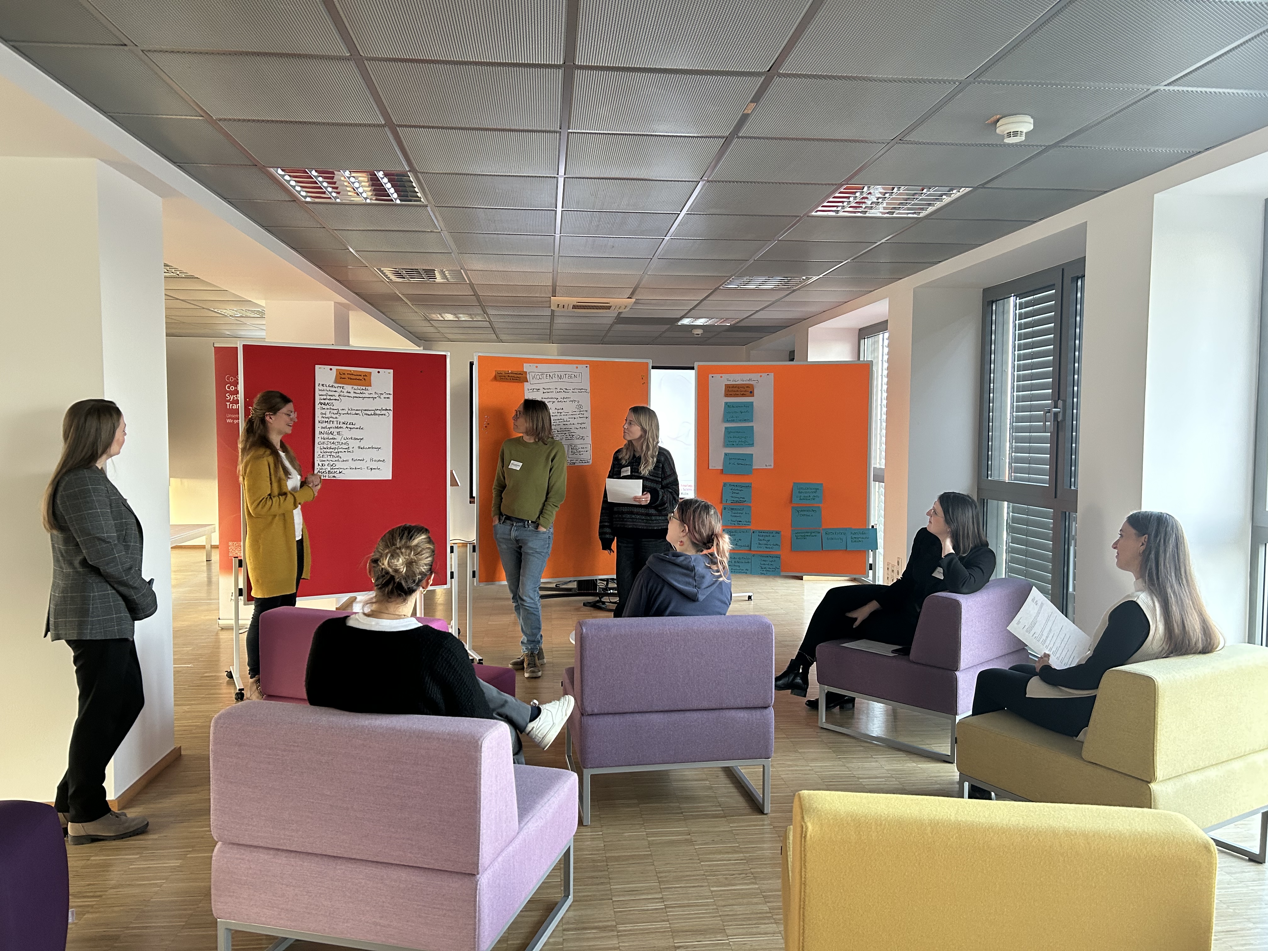 Im Anschluss arbeiteten die Teilnehmerinnen in Kleingruppen an einem prototypischen Bildungsformat. Dabei wurden inhaltliche Schwerpunkte, Zielgruppen, Methoden und mögliche Inhalte für eine künftige Weiterbildung entwickelt. Die Ergebnisse zeigen, wie wichtig praxisnahe, interaktive und zielgruppenspezifische Angebote sind, um Mitarbeitende in Kommunen effektiv für die Herausforderungen der Bürgerkommunikation im Bereich Klimaanpassung zu stärken.