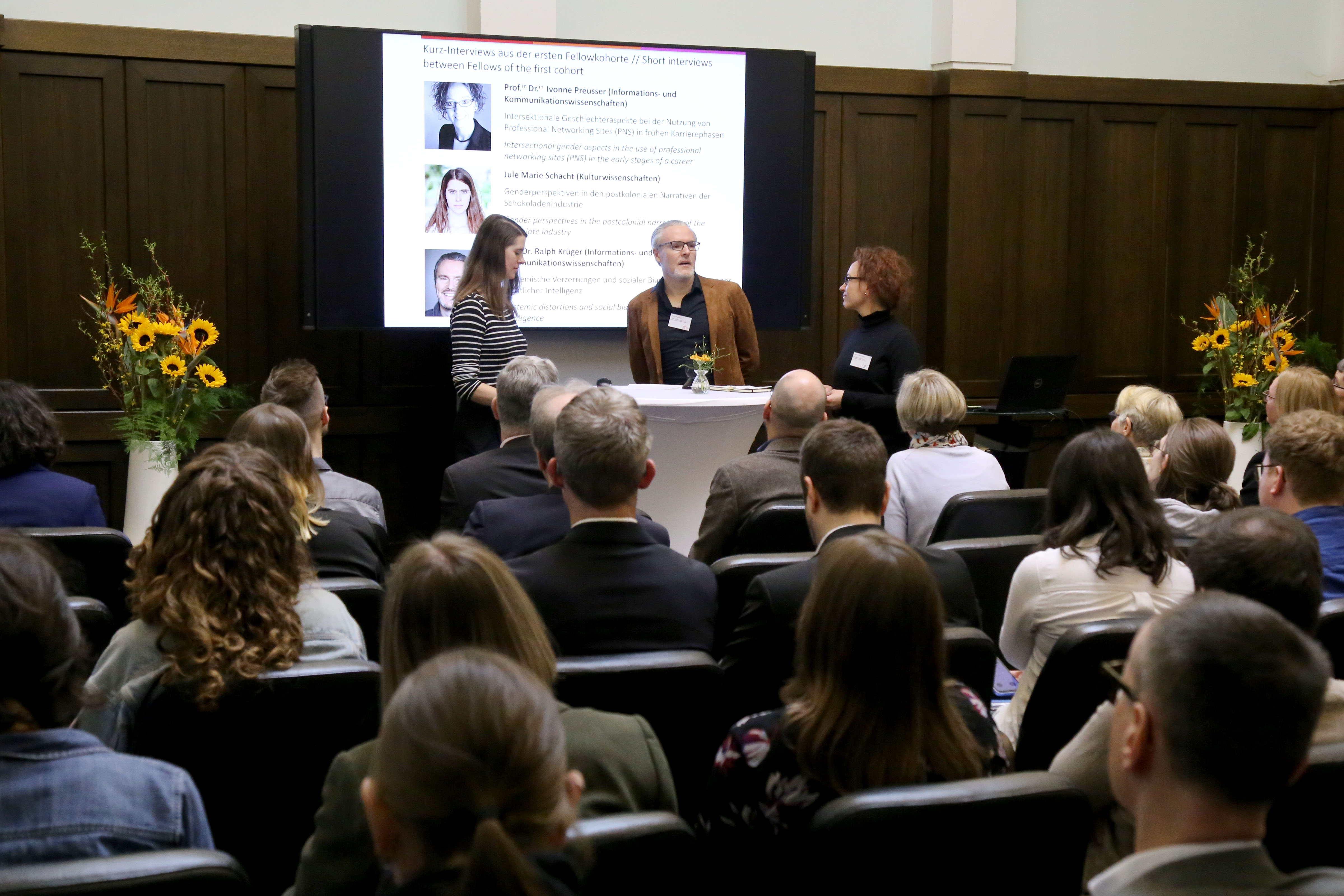 Der offizielle Teil der Veranstaltung endete mit der Verleihung der neuen Fellowships. Insgesamt 15 Wissenschaftler*innen aus sieben Fakultäten wurden dafür von einer externen Jury in einem kompetitiven Verfahren ausgewählt.