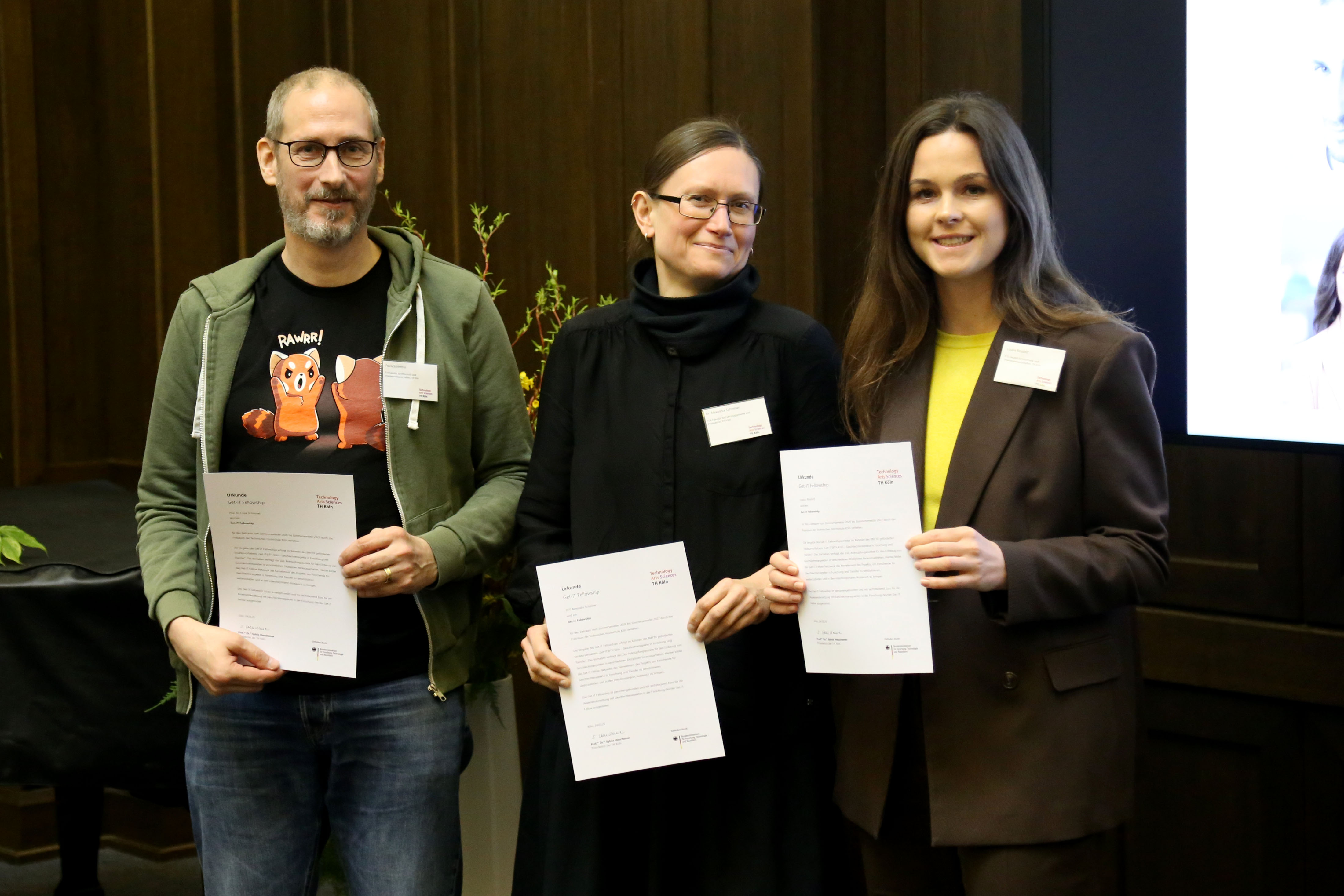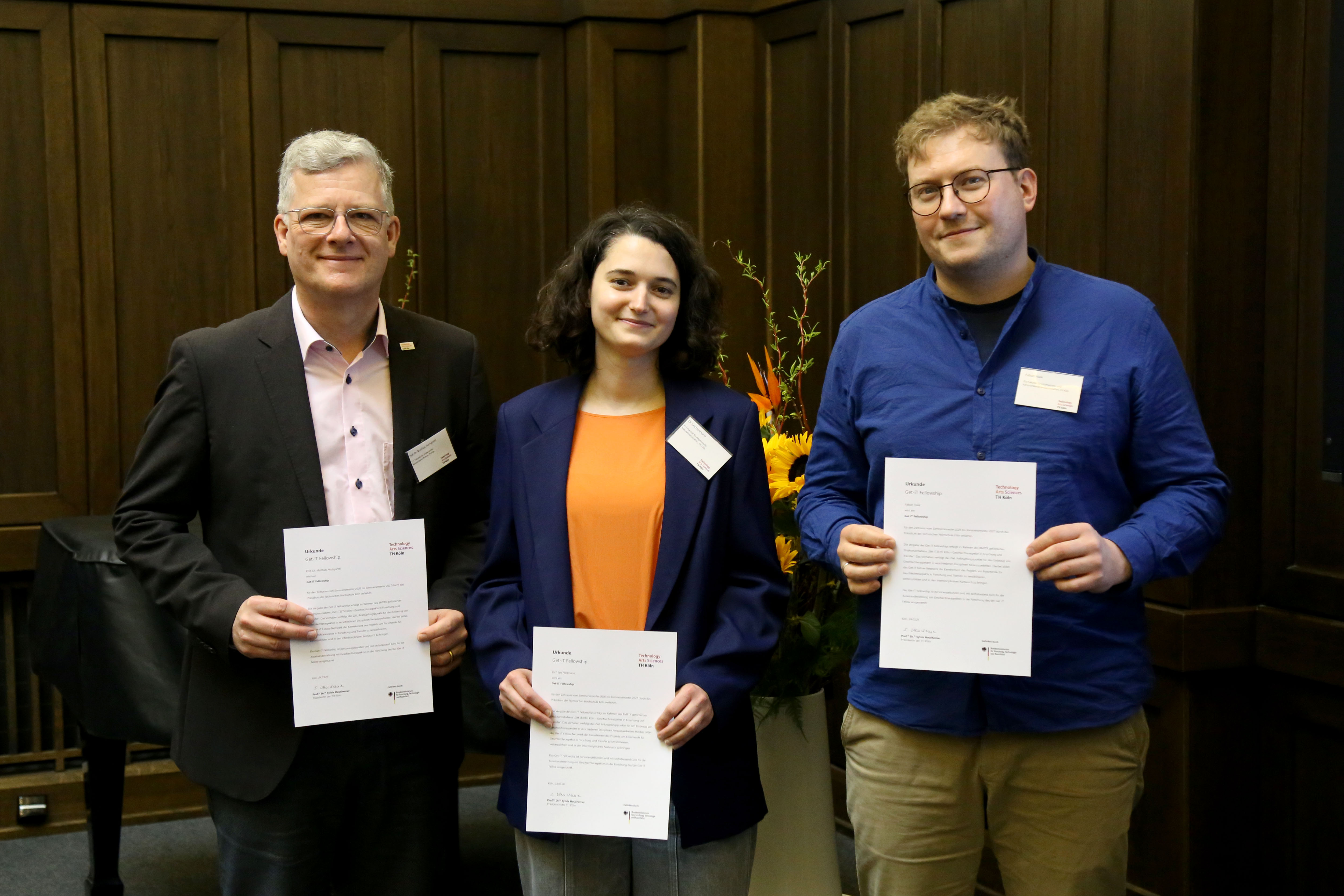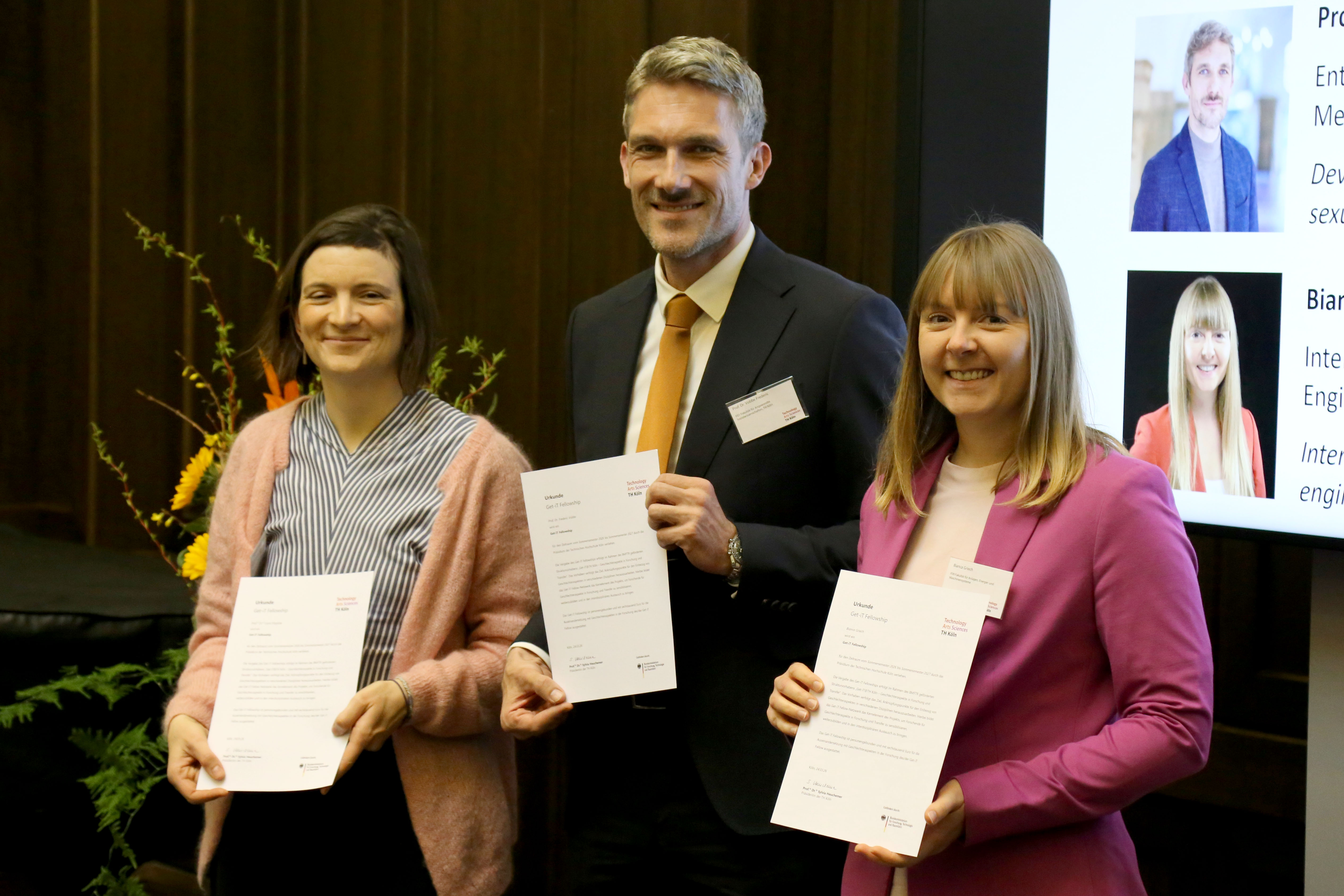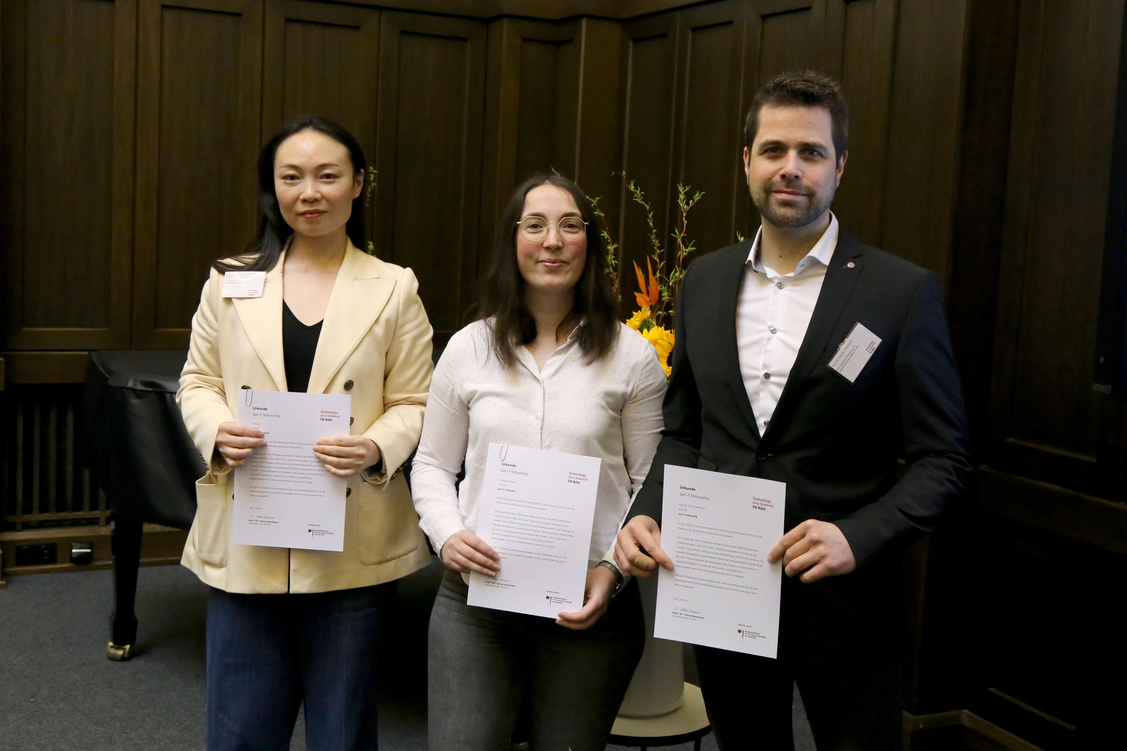 Am 24.03.2026 wurden die im Rahmen des hochschulweiten, vom BMFTR geförderten Projekts „Get-iT@TH Köln - Geschlechteraspekte in Forschung und Transfer“ ausgeschriebenen Fellowships offiziell durch die Präsidentin und Projektleitung, Prof. Dr. Sylvia Heuchemer, feierlich verliehen.