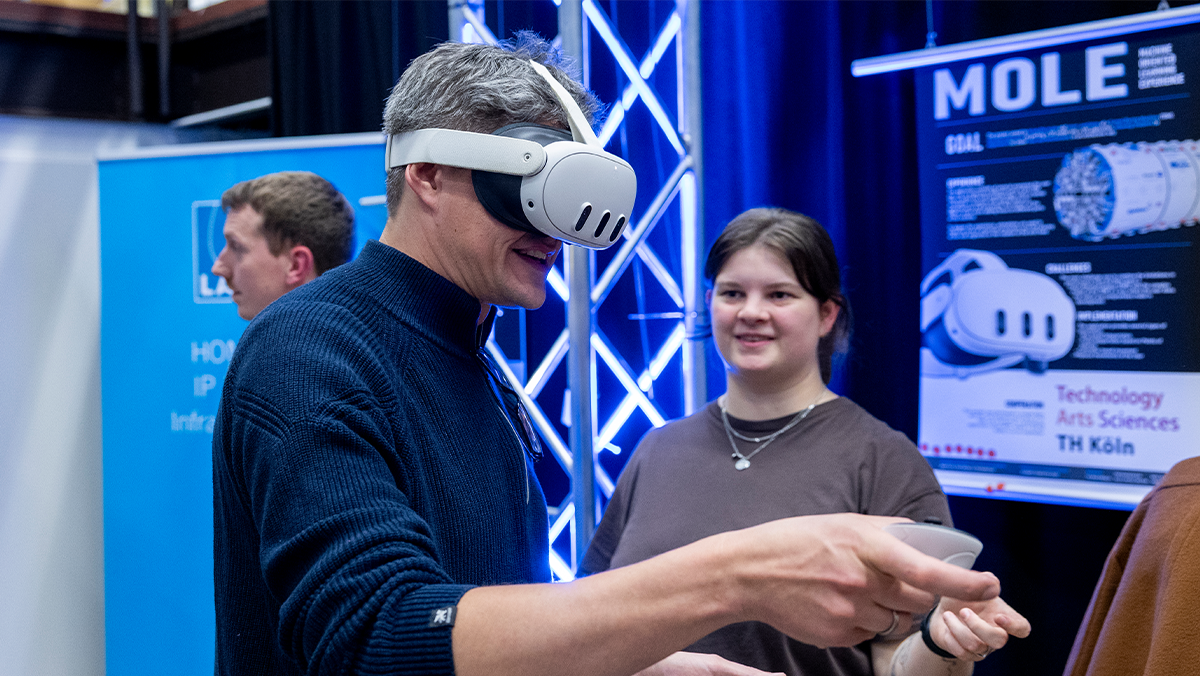 Von Kurzfilmen auf Basis von Künstlicher Intelligenz bis hin zu Systemen zur Analyse von Tischfußball oder Tennis: Die Bandbreite der diesjährigen Projekte zeigte eindrucksvoll, wie vielseitig der Studiengang Medientechnologie ist. (Bild: Michael Bause/TH Köln)