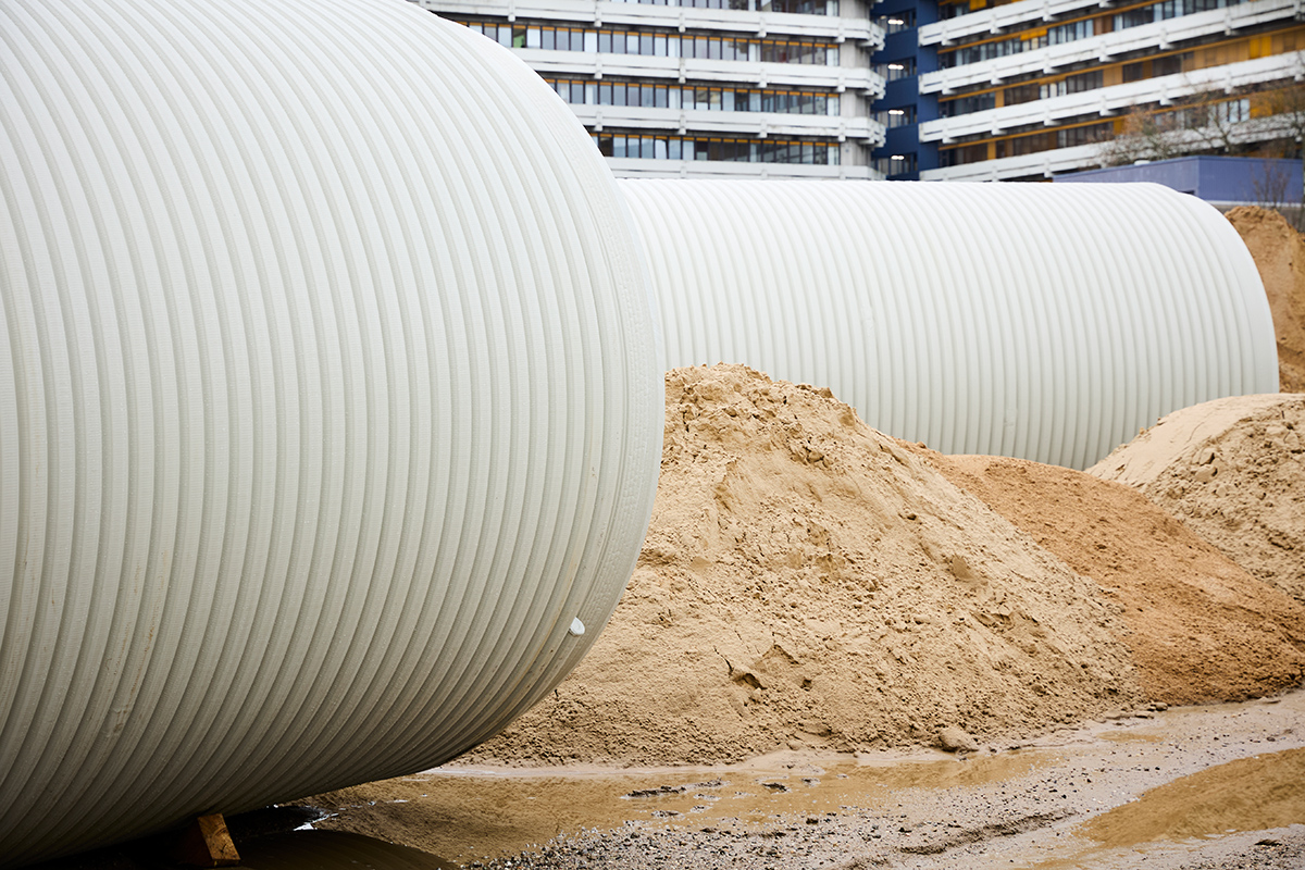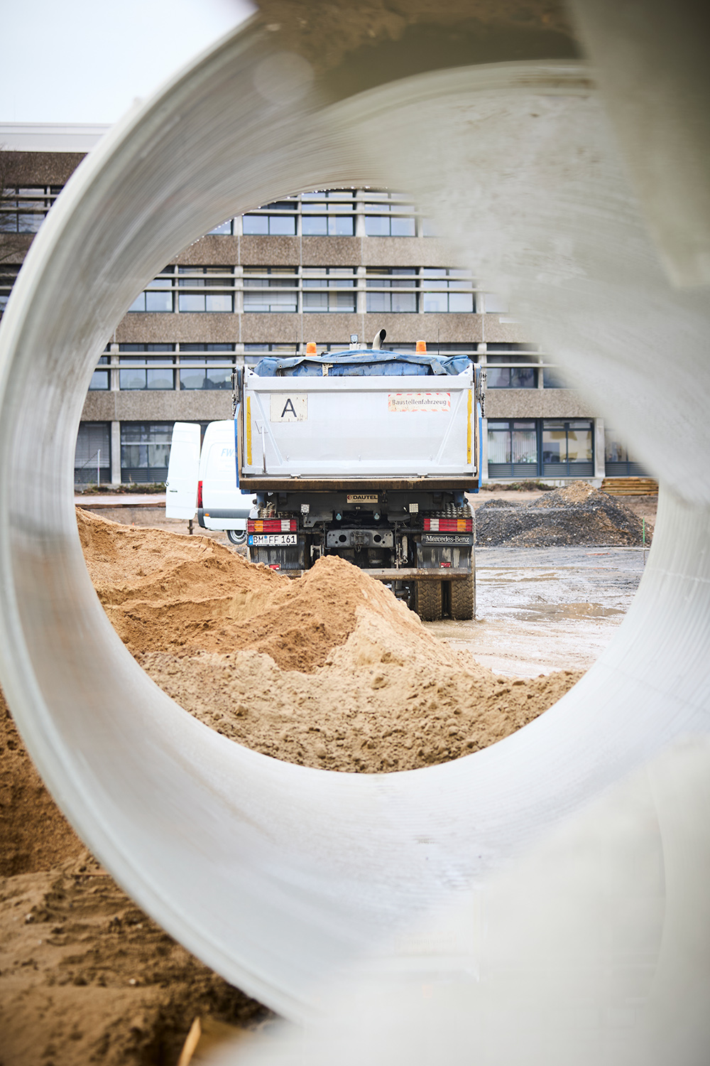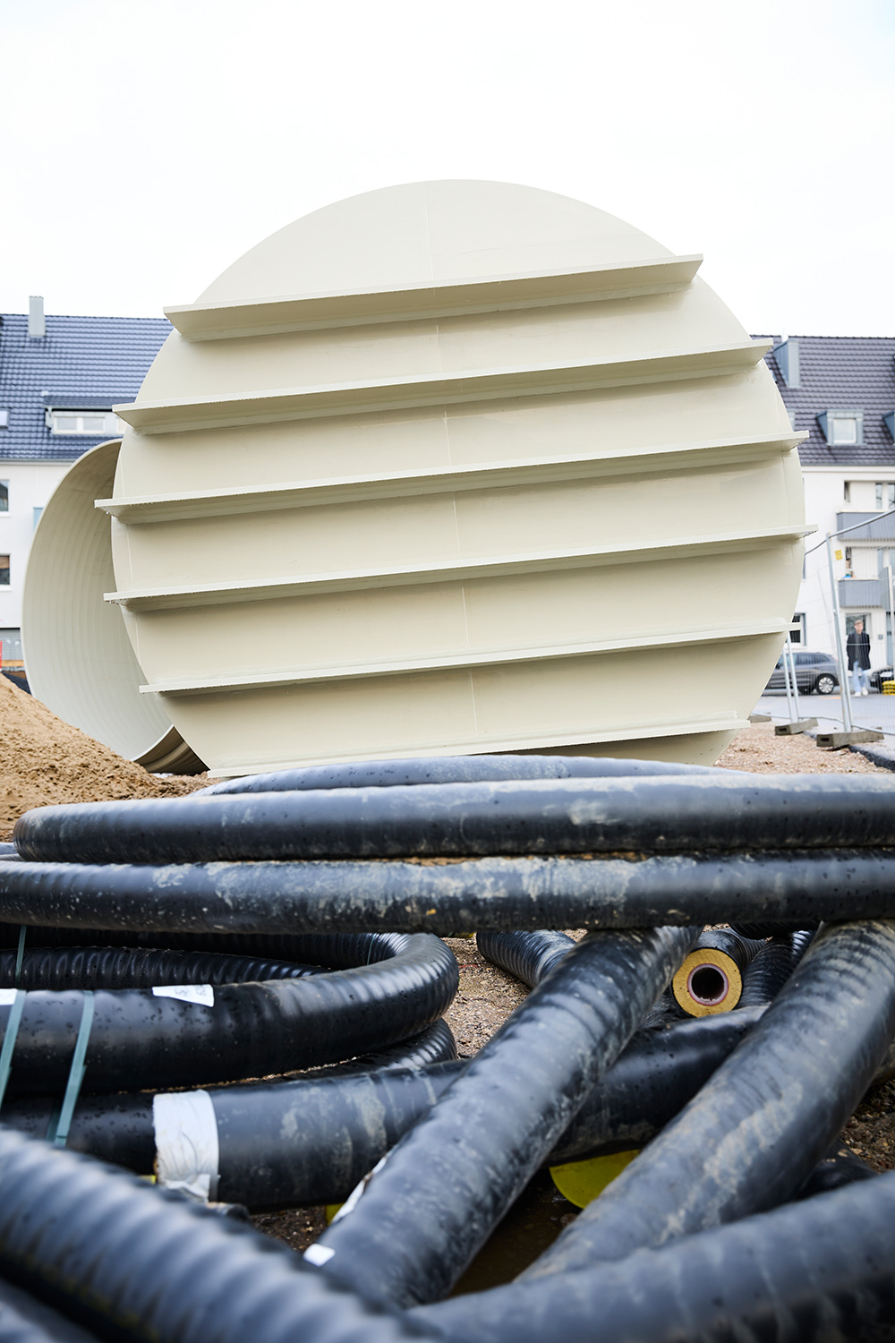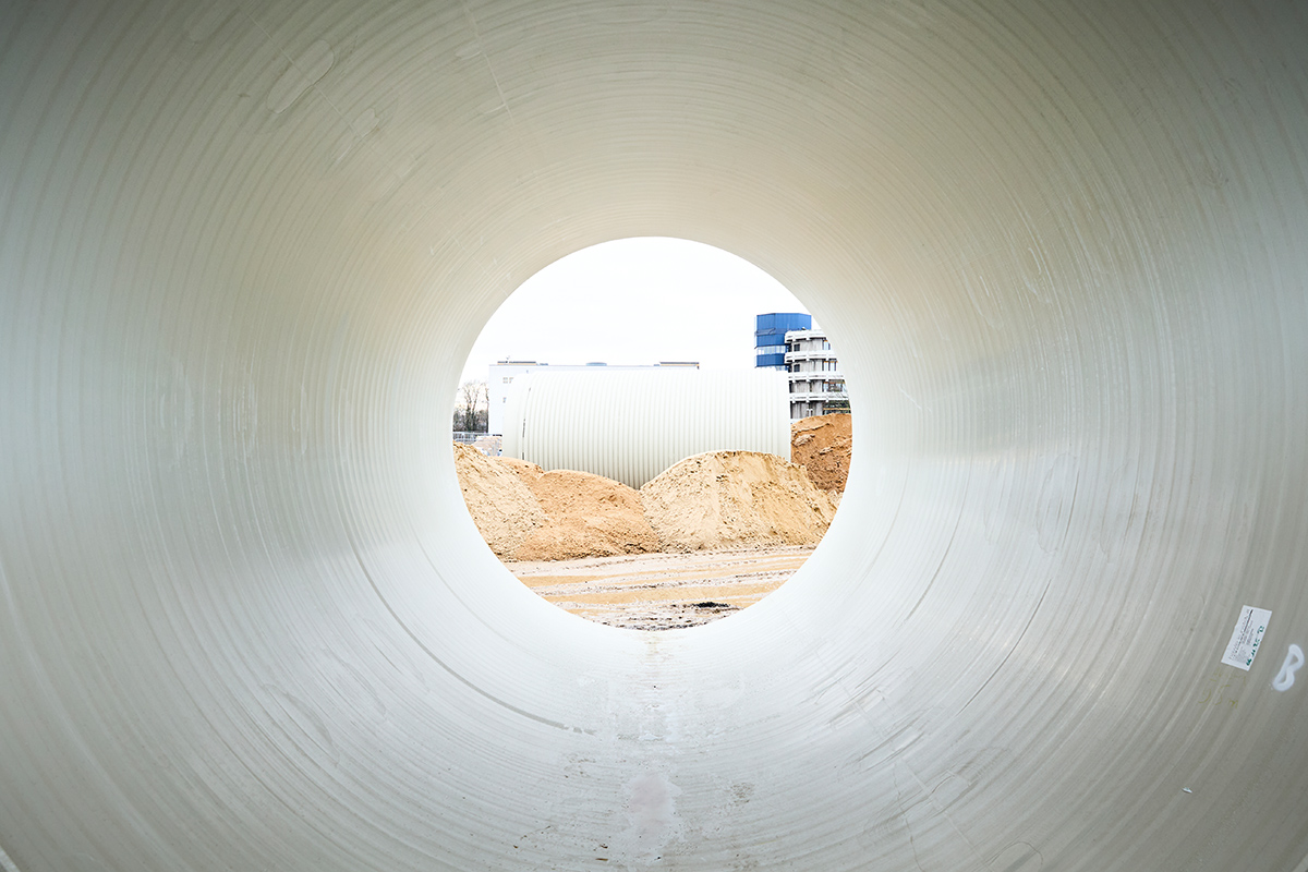 Die Fotos wurden am 13. Januar 2026 aufgenommen, als die Rohre für das unterirdische Löschwasserreservoir bereitlagen. Zur Meldung: Riesenrohre für Löschwasserbehälter
