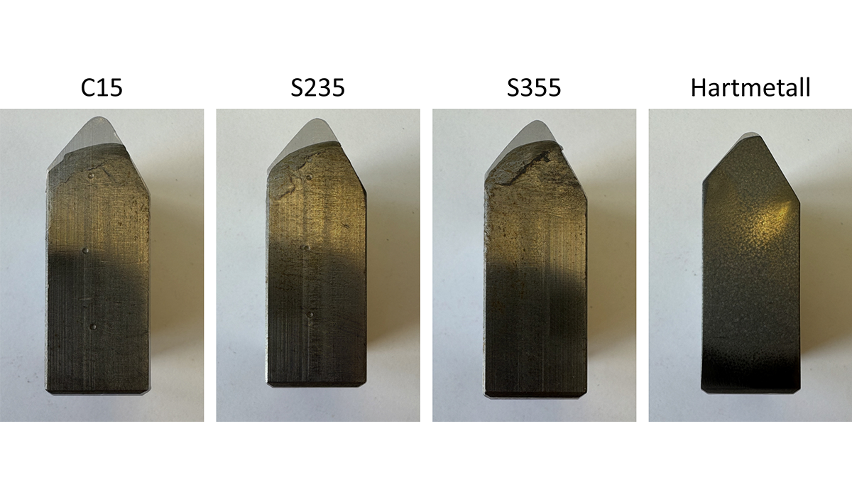 Dafür wurden Werkzeuge aus den Materialien C15, S235 JR, S355 MC und Hartmetall hergestellt und mit einem Traktor insgesamt zwei Kilometer lang durch Boden gezogen. Anschließend standen LCPC-Tests mit Prüfflügeln aus dem gleichen Material und Proben aus dem gleichen Boden auf dem Programm. Dabei zeigten sich erwartungsgemäß deutliche Unterschiede. „Während die Laborversuche eine geringe Abrasivität des Bodens ergaben, zeigte sich an den Werkzeugen aus dem Realversuch ein hoher Verschleiß. Messwerte und Simulationen haben klar gezeigt, dass der Verfestigungszustand von Böden, Bodenverhältnissen und Bodenmaterialien einen gravierenden Einfluss auf die Widerstandskräfte und damit auf die Abnutzung der Werkzeuge haben“, sagt Erdmann.