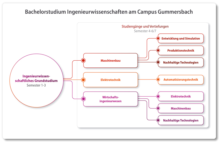 Das Studium ist aufgeteilt in ein ingenieurwissenschaftliches Studium und ein vertiefendes "Hauptstudium" mit der von dir gewählten Fachdisziplin. Das ingenieurwissenschaftliche Studium dauert 3 Semester. Unabhängig davon, ob du dich für Maschinenbau, Elektrotechnik oder Wirtschaftsingenieurwesen bei uns einschreibst: In den ersten 3 Semestern studieren alle angehenden Ingenieur*innen zusammen.