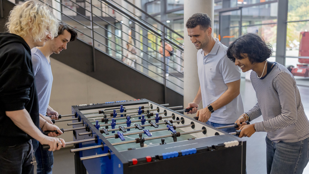 Zum Chillen bieten sich viele Rückzugsorte: Zum Beispiel unser Kicker und Tischtennisbereich. (Bild: TH Köln, Hanna Witte)