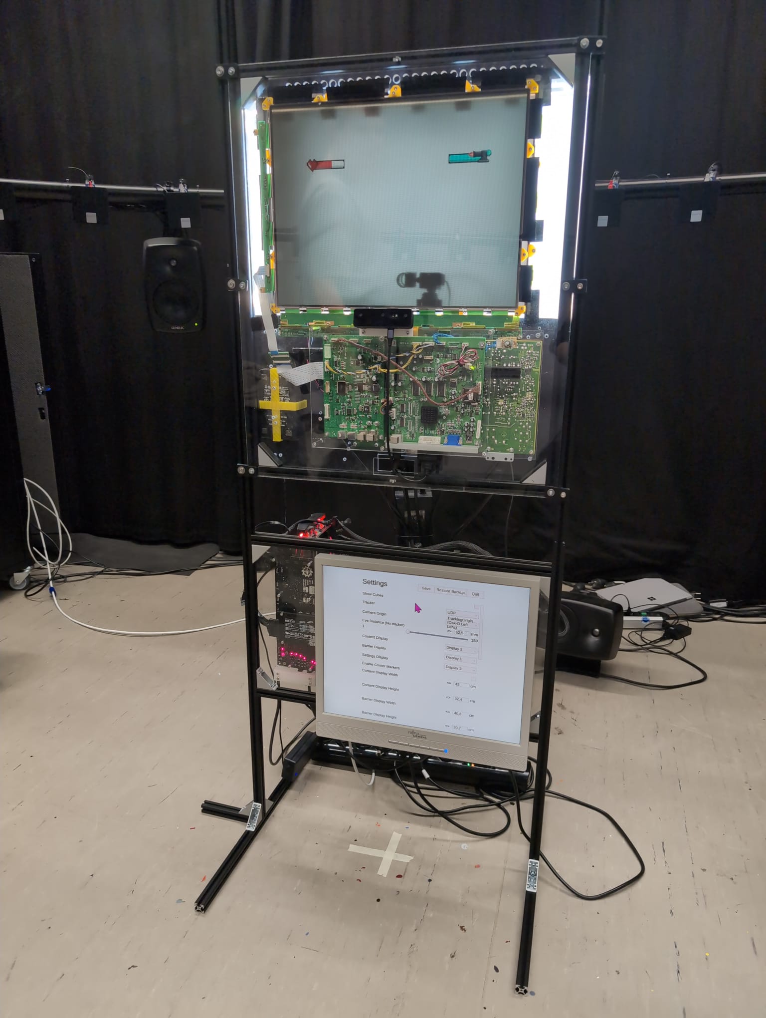 Grundlage des Systems ist ein transparentes Display mit Parallaxbarriere, das für eine einzelne betrachtende Person eine dreidimensionale Darstellung erzeugt. Ergänzt wird dies durch ein hybrides Tracking-System, das Kopf- und Handbewegungen in Echtzeit erfasst. Dadurch kann die Darstellung perspektivisch an die Betrachtungsposition angepasst und zugleich eine direkte Interaktion mit der Anwendung ermöglicht werden.