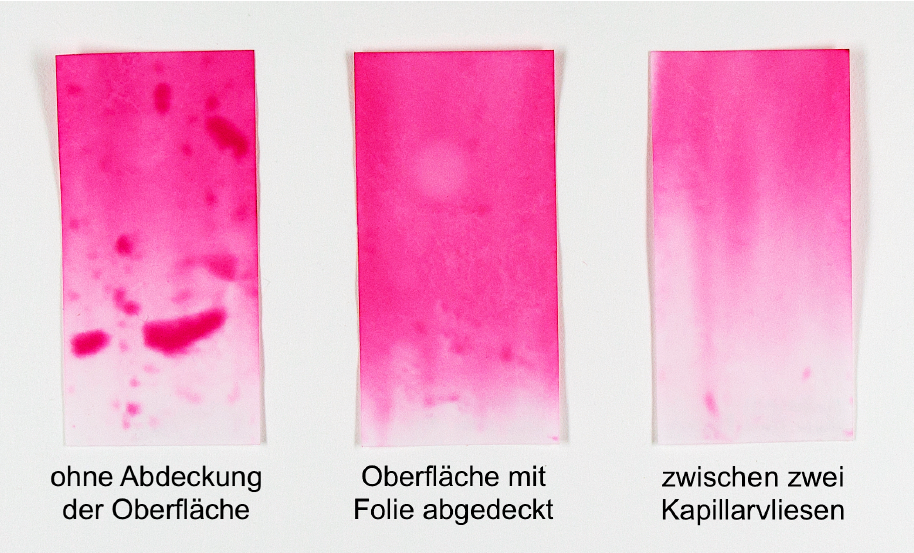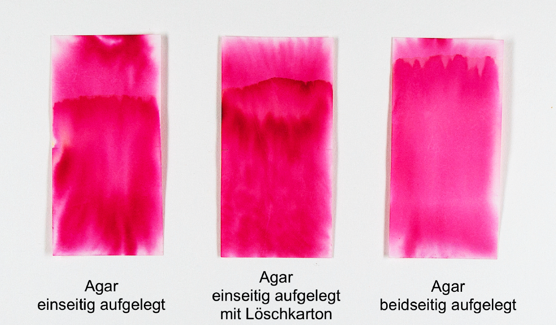 Probekörper nach der Versuchsdurchführung mit Agar-Gelen, gut erkennbar ist die Bildung von Schwemmrändern. (Bild: Anne Prothmann)