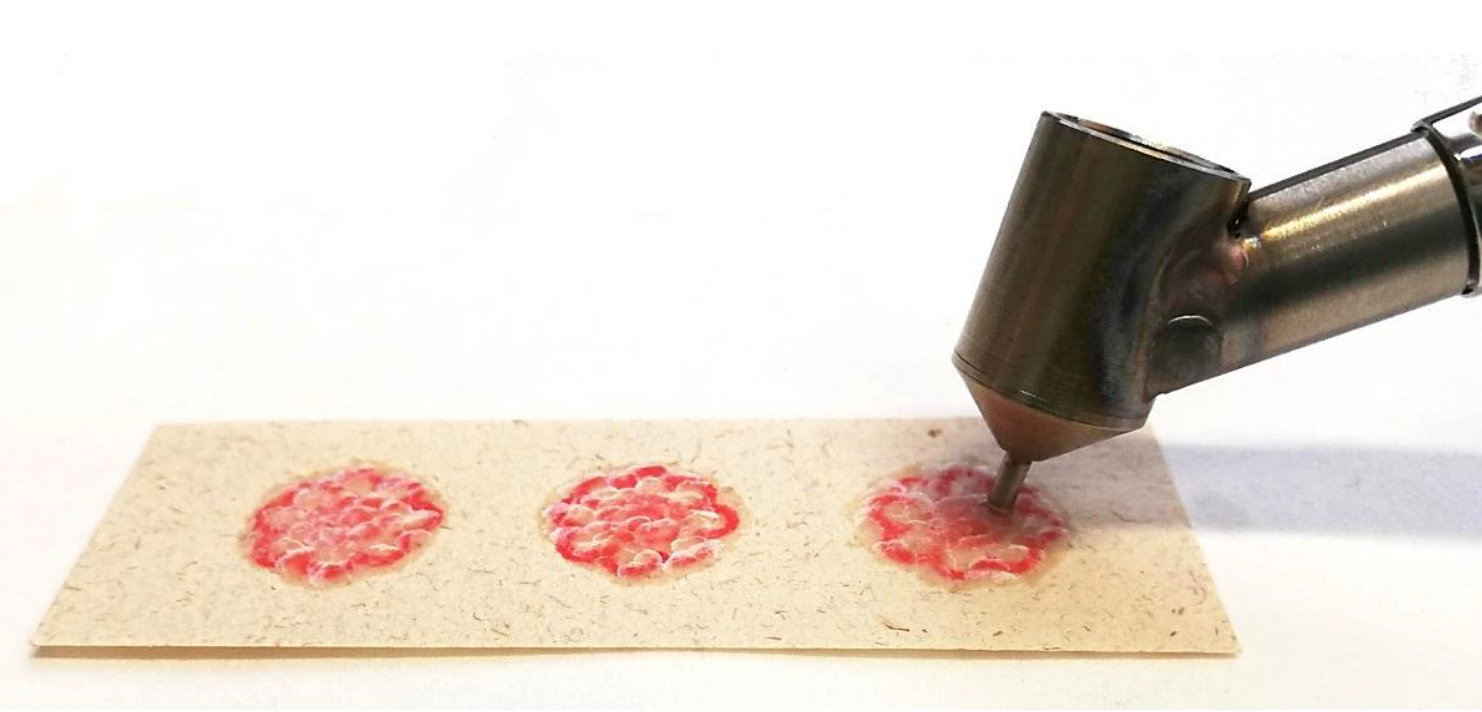 Auftrag der Schmelze mit einem speziell entwickelten Aufsatz für den Heizkolben. (Bild: Maike Linden)